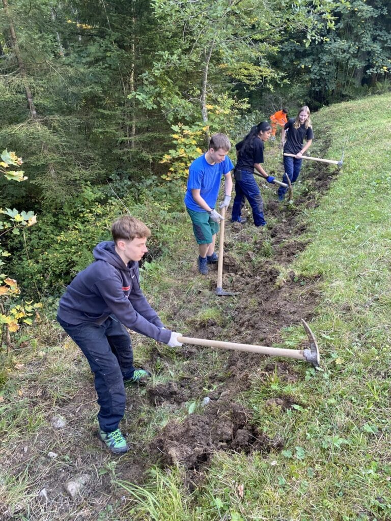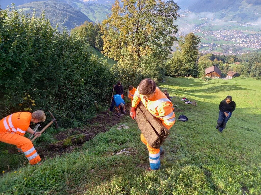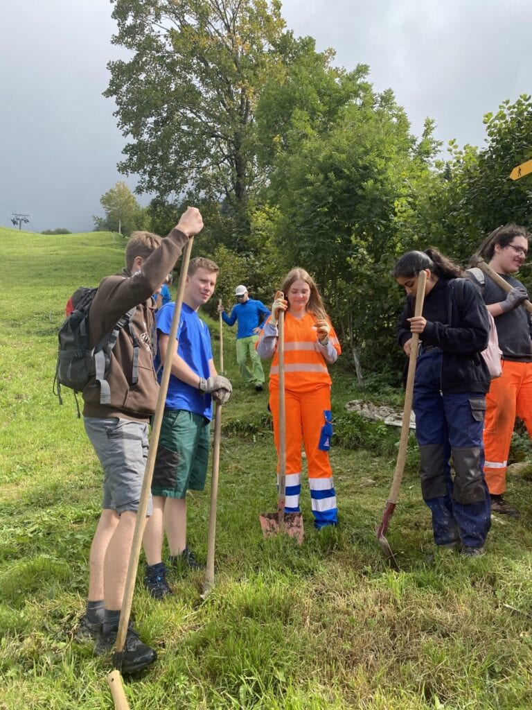 Zusammen mit den „Schwyzer Wanderwegen“ wurde geschaufelt, gepickelt und gehackt um sichere und zugängliche Wanderwege für die Öffentlichkeit zu schaffen.